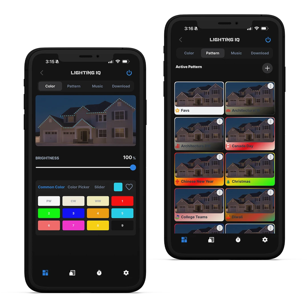With our exclusive system, available solely through Lighting IQ, managing your permanent holiday lighting has never been simpler. Our newly developed app boasts a seamless and user-friendly interface, accessible right from your smartphone. It has rapidly emerged as one of the most sought-after lighting control systems on the market, exclusively offered in Vancouver and the Fraser Valley by Lighting IQ. Explore our features to discover why Lighting IQ is the ultimate choice for those seeking a vibrant and intelligent lighting experience.